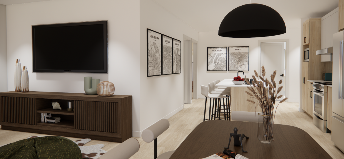Situé près de l’autoroute 15 et à cinq minutes de la gare de Mirabel, notre emplacement combine vie urbaine et tranquillité. Notre projet offre intimité, sécurité, efficacité énergétique, et bornes de recharge pour voitures électriques. Les Tours de la Gare, à Mirabel, proposent également un chalet urbain avec salle de sport, salle de réception, piscine extérieure, et terrasses extérieures.